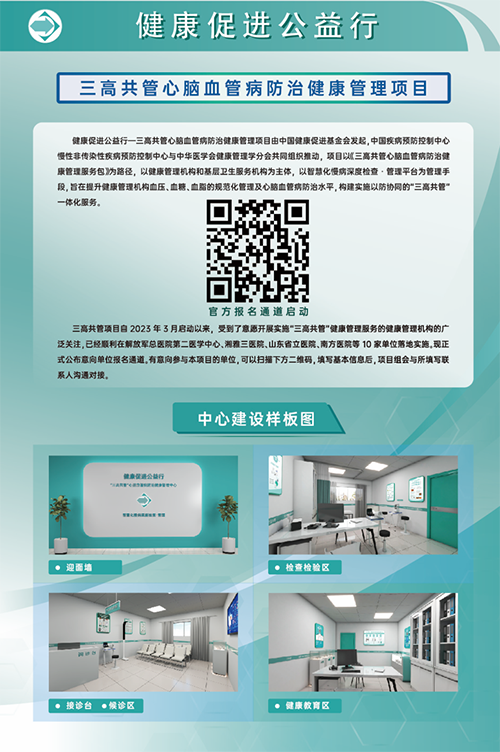 三高共管心腦血管病防治健康管理項(xiàng)目由中國(guó)健康促進(jìn)基金會(huì)發(fā)起,中國(guó)疾病預(yù)防控制中心慢性非傳染性疾病預(yù)防控制中心與中華醫(yī)學(xué)會(huì)健康管理學(xué)分會(huì)共同組織推動(dòng),項(xiàng)目以《三高共管心腦血管病防治健康管理服務(wù)包》為路徑,以健康管理機(jī)構(gòu)和基層衛(wèi)生服務(wù)機(jī)構(gòu)為主體,以智慧化慢病深度檢查·管理平臺(tái)為管理手段,旨在提升健康管理機(jī)構(gòu)血壓、血糖、血脂的規(guī)范化管理及心腦血管病防治水平,構(gòu)建實(shí)施以防協(xié)同的“三高共管一體化服務(wù)。